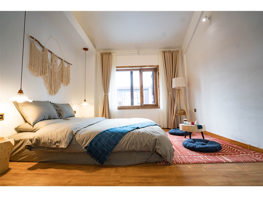 不花民宿,十二間客房,像是在講述著一年時光的故事,其蘊含的情感、趣味都在層層展開。家具的極簡布置,原木主題,顯得格外典雅、舒緩、平和??头吭O施皆按星級標準,高質(zhì)睡眠型床墊、名牌洗漱用品、國際頂尖品牌衛(wèi)浴。客房環(huán)境明亮通透,落地窗映出最美景色。