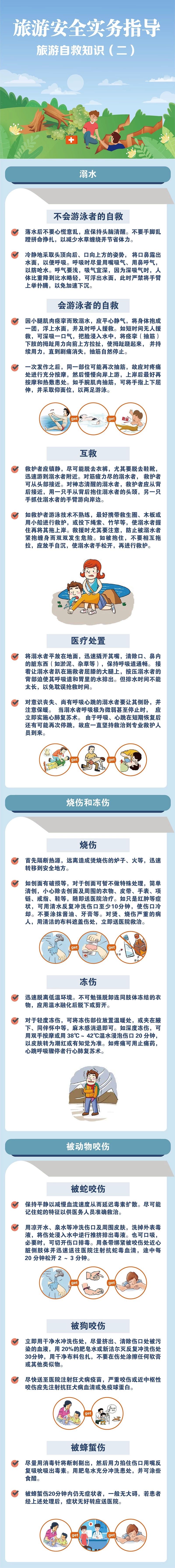 秋高氣爽,正宜出游。若在旅途中不幸遇險(xiǎn)或受傷,如溺水、燒傷、凍傷、被蛇咬傷、被狗咬傷、被蜂蜇傷等,需冷靜對(duì)待,妥善處理。
