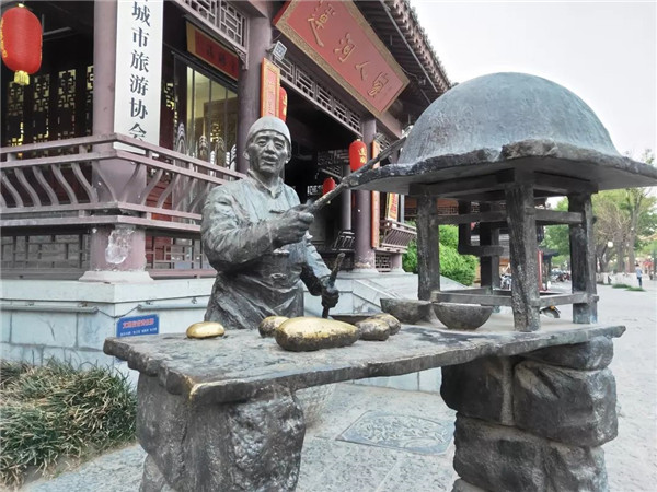 作為聊城的味覺標志,在聊城的街道旁還能看到打燒餅的塑像,活靈活現(xiàn),十分有趣。武大郎燒餅和潘金蓮咸菜的趣聞異事源遠流長。顧名思義與水滸傳中故事人物有關。
