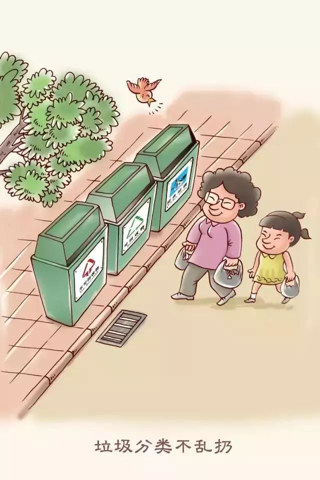 要把廢棄物丟進(jìn)垃圾桶,并注意垃圾分類投放。