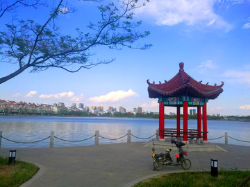 風(fēng)光秀麗的東昌湖環(huán)繞聊城古城一周,始建于宋熙寧三年(公元1070年)。當(dāng)時(shí)因修筑城墻以及護(hù)城堤挖土而成,后經(jīng)歷代開(kāi)闊,現(xiàn)在面積已達(dá)6.3平方公里,與杭州西湖相當(dāng),是濟(jì)南大明湖的4—5倍。東昌湖由10個(gè)湖區(qū)和20塊水面組成,湖岸線長(zhǎng)達(dá)16千米,是中國(guó)江北地區(qū)罕見(jiàn)的大型城內(nèi)湖泊,她為聊城這座城市增加了靈氣,是聊城的最靚點(diǎn)。她以黃河水為源,積水約1680萬(wàn)立方米,水深3—5米,常年不竭。東昌湖水清澈;景色宜人,令游客流連忘返,是國(guó)家釣魚(yú)基地,適宜水上游樂(lè)項(xiàng)目的開(kāi)發(fā)與建設(shè)。