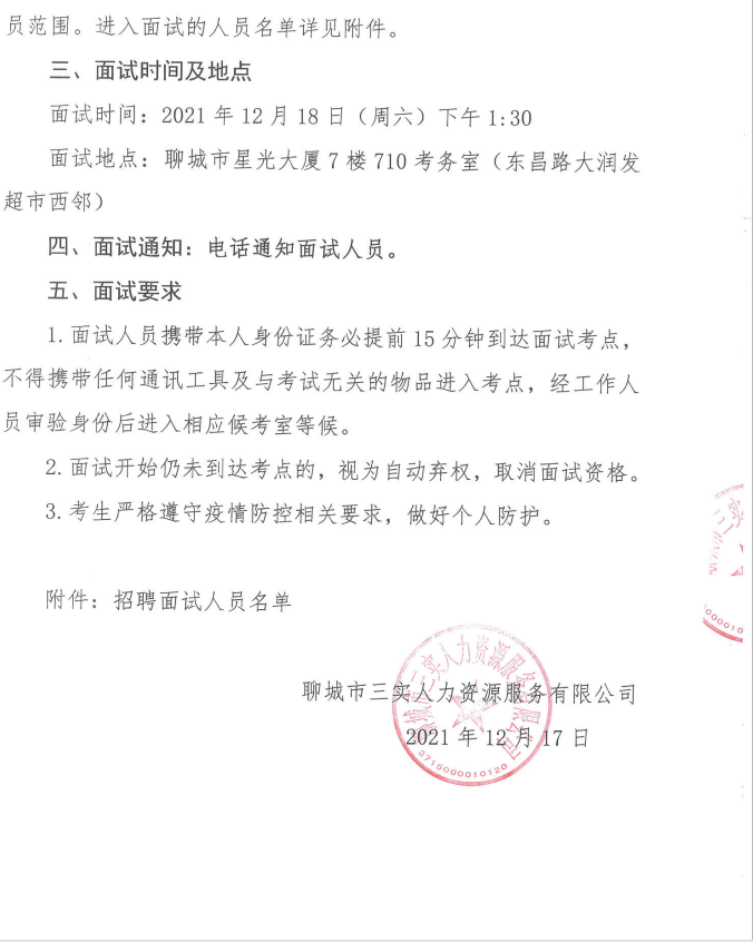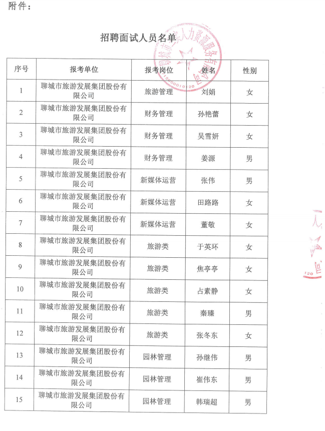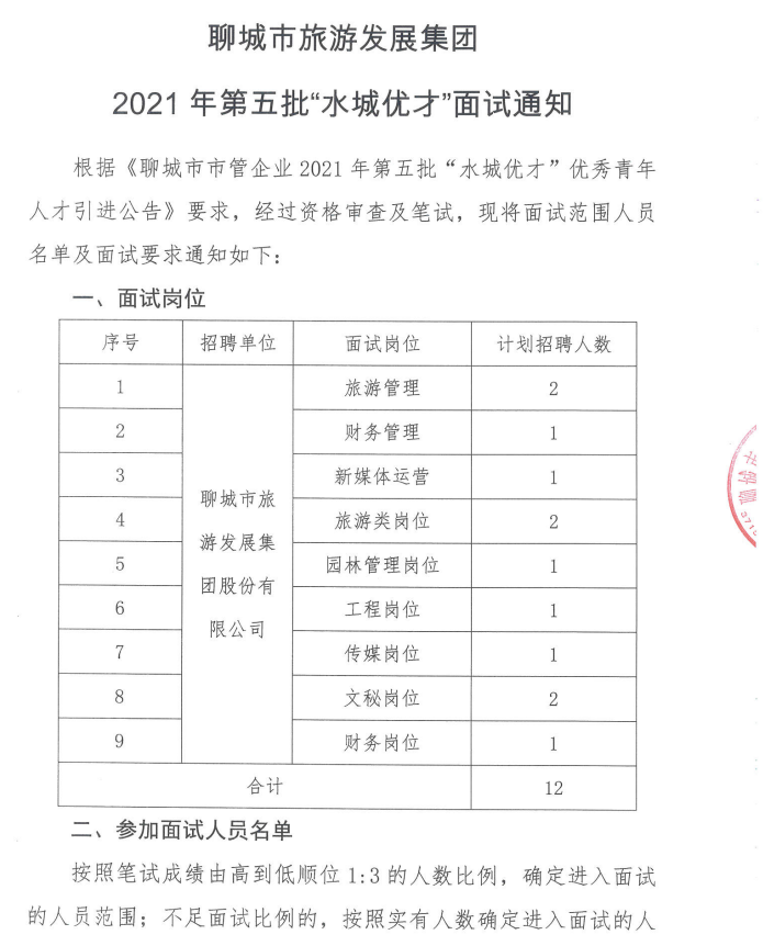 聊城市旅游發(fā)展集團(tuán)2021年第五批“水城優(yōu)才”面試通知
