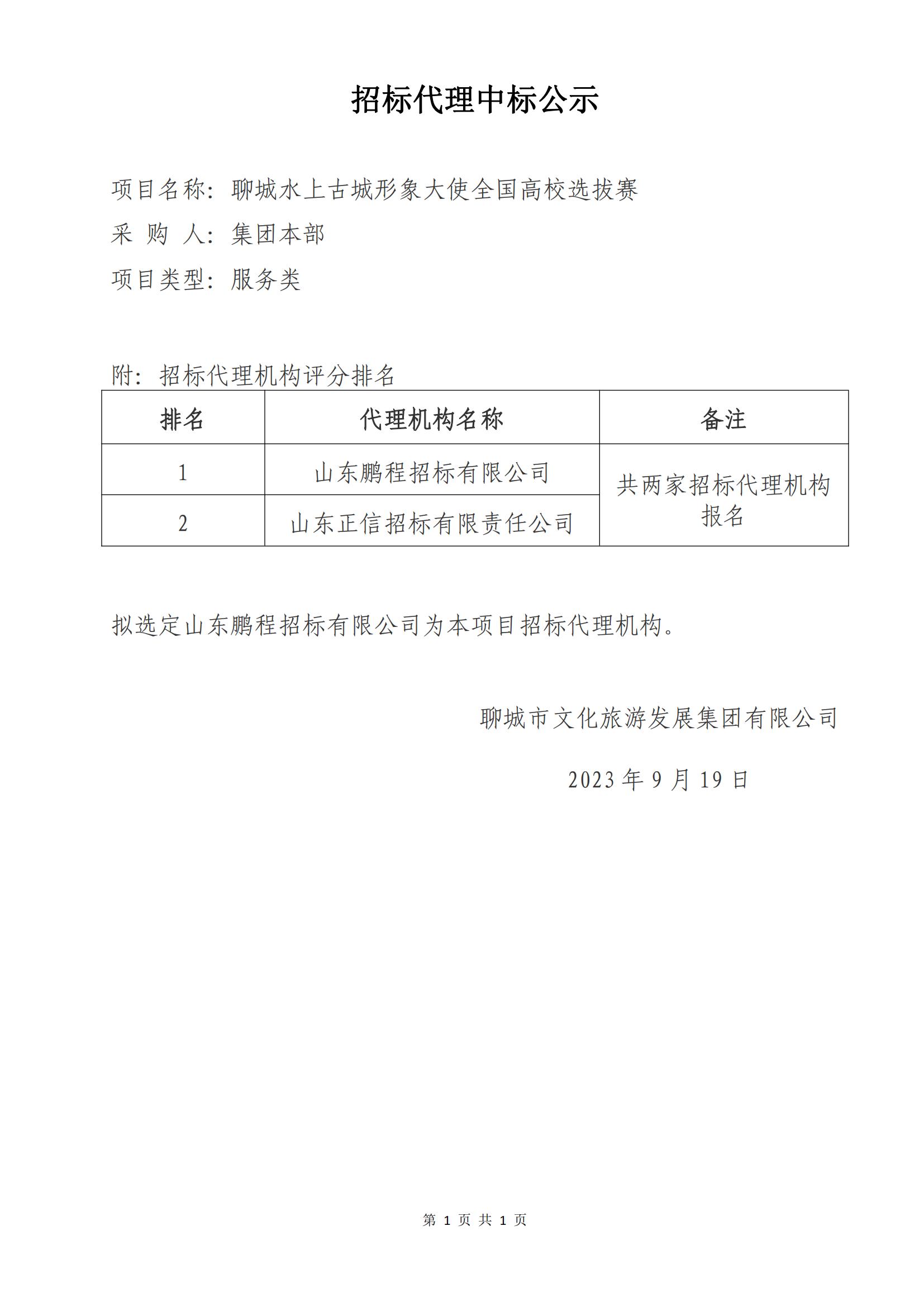 招標(biāo)代理中標(biāo)公示