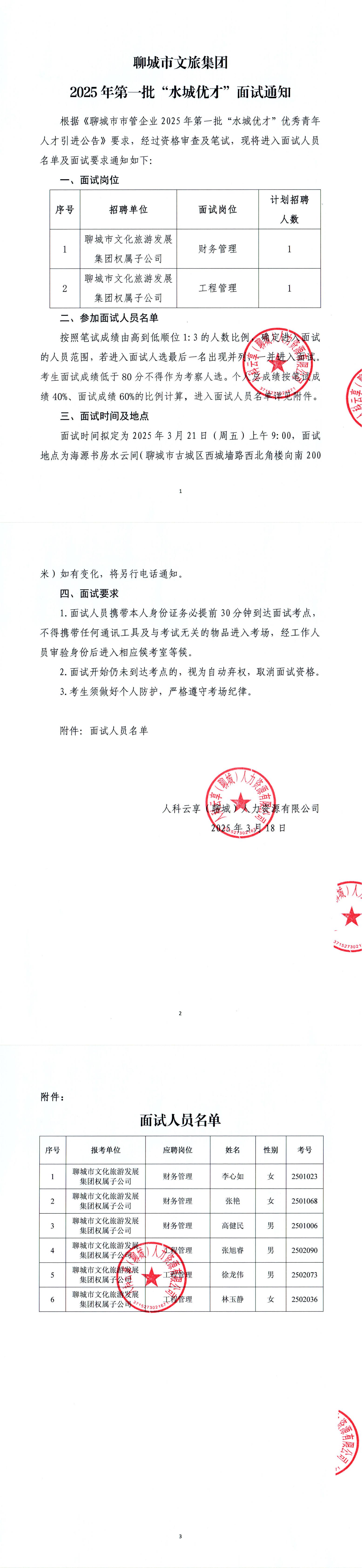 聊城市文旅集團(tuán)2025年第一批“水城優(yōu)才”面試通知