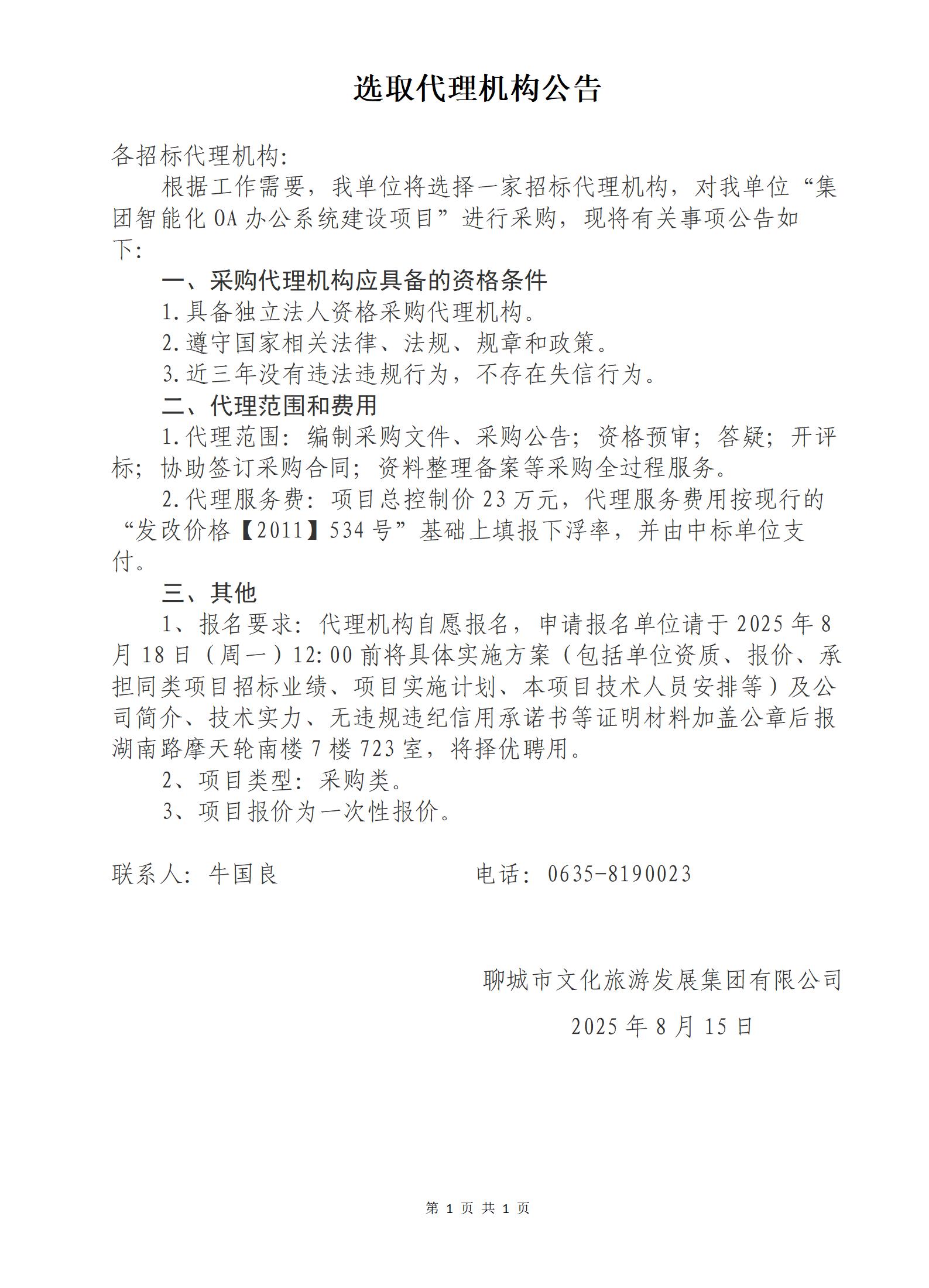 選取代理機(jī)構(gòu)公告