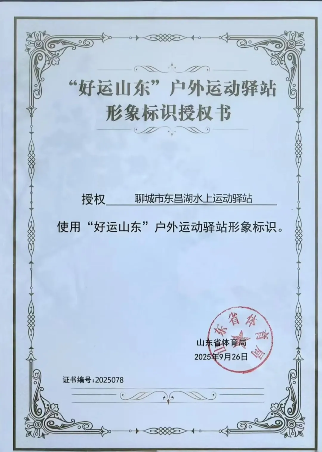 近日,聊城市文旅集團(tuán)東昌湖水上運(yùn)動(dòng)中心成功入選山東省2025年“好運(yùn)山東”戶外運(yùn)動(dòng)驛站并獲形象標(biāo)識授權(quán)。
